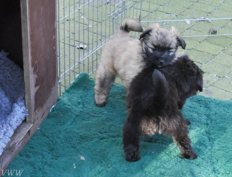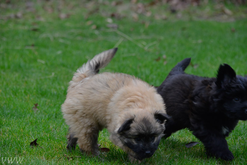 Unsere Zwerge wissen gar nicht wohin mit ihrer Energie, wann immer sie die Möglichkeit haben toben sie mit den kleinen I´s durch den Garten. Die Streicheleinheiten der Besucher genießen sie. Nächste Woche werden die Puscheln vom Tierarzt in Augenschein genommen. Danach steht der Besuch des Zuchtwartes an.