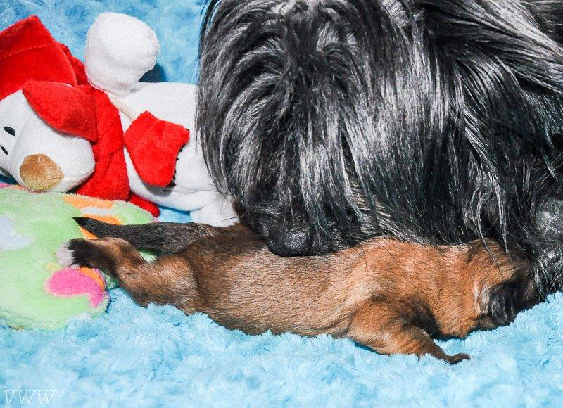 Am 18. Dezember 2016 bekam Ebby (Elster) ihren ersten Welpen, Vater ist Blauregen vom Wissener Wald. Der kleine Rüde wog bei der Geburt 250 g und hat sein Gewicht in der ersten Woche verdoppelt. Er erhielt den Namen Löwenzahn. Unser Quirl Ebby gibt eine wirklich gute Mama ab und kümmert sich liebevoll um den Miniberger.